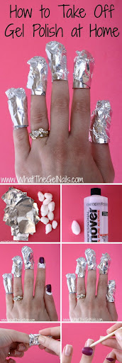 Then soak cotton swabs in acetone nail polish remover place one over each nail and wrap it tightly with a small square of aluminum foil. Repeat for all of your fingers. The foil method is not only popular but it is also the safest.